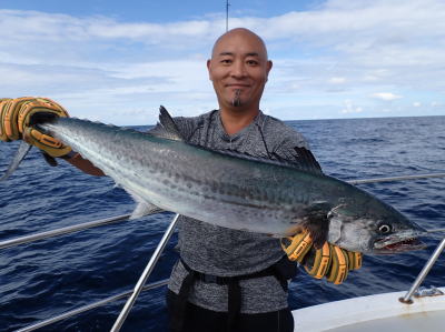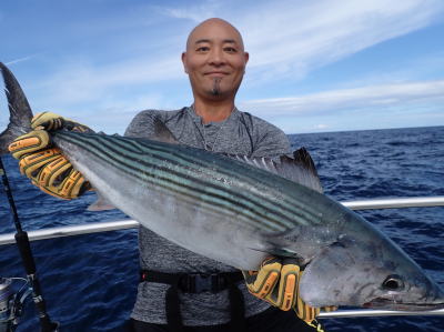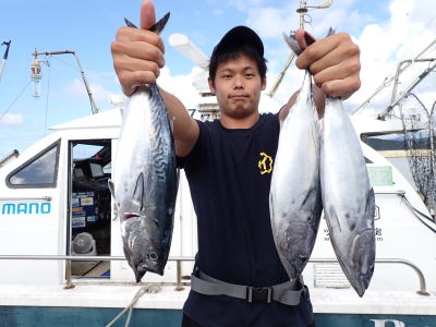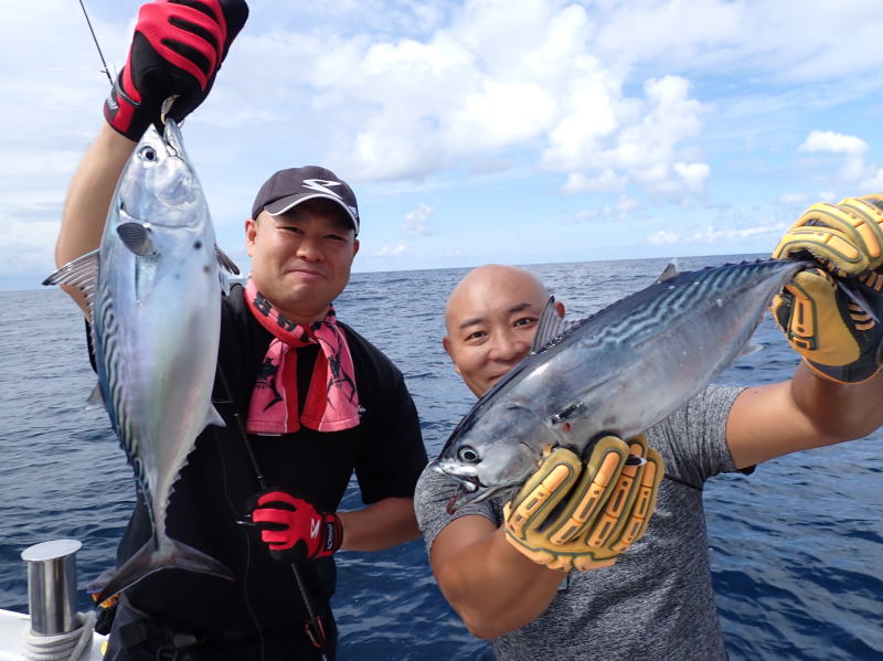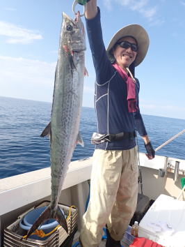 春以来のジギングでした。イカもマイカからアオリイカに変わってきて秋の海になってきました。大ハマチ7本、サワラ11本、スマガツオ20本以上、良型ヒラマサ、真鯛、シオ、バショウカジキがヒット!秋のジギング、ご予約お待ちしてます。