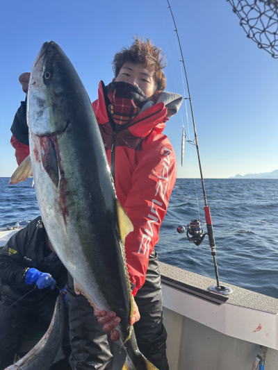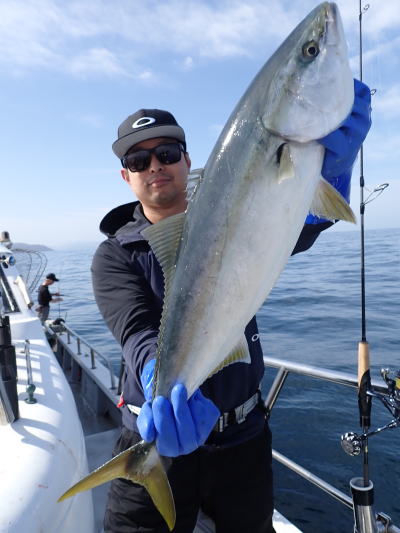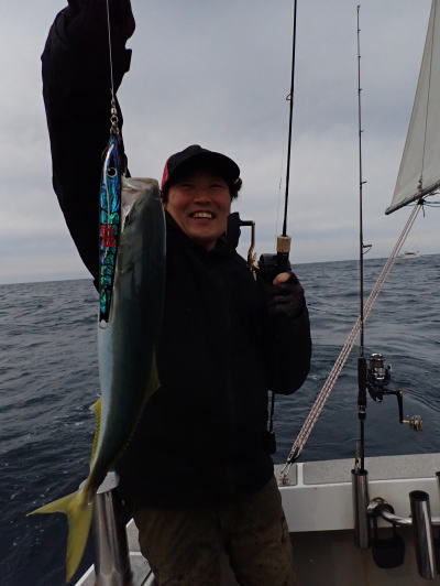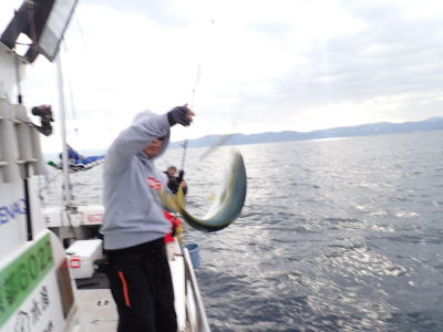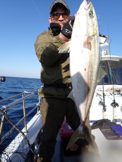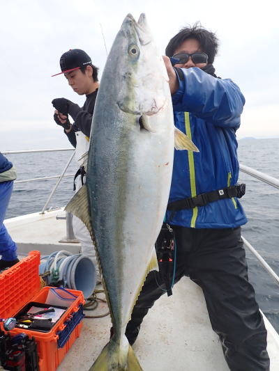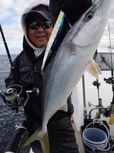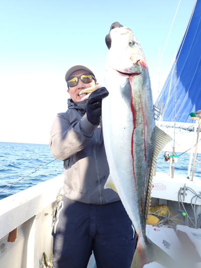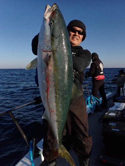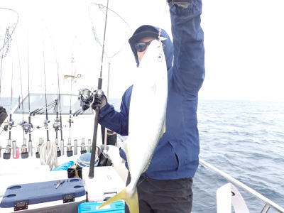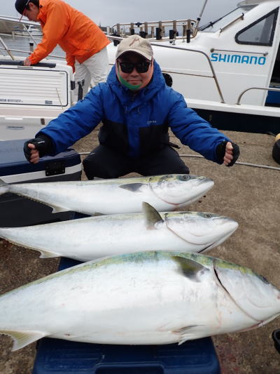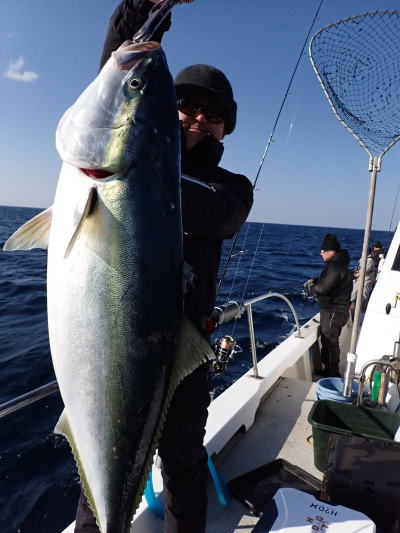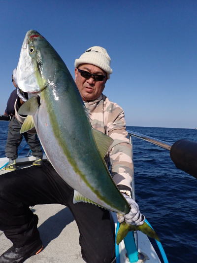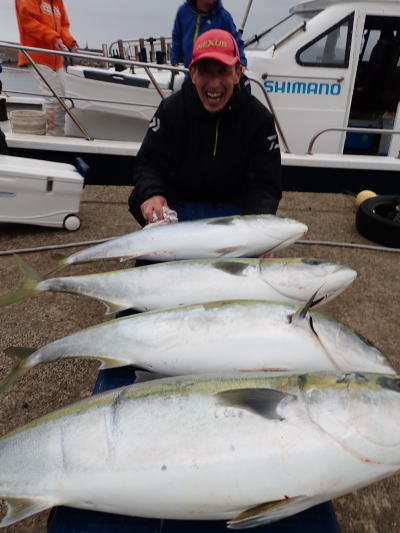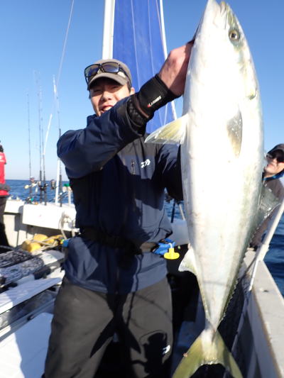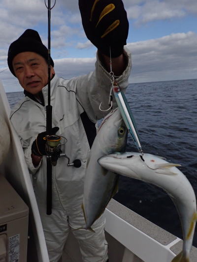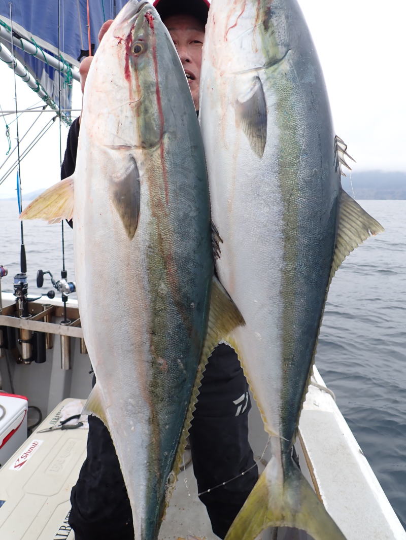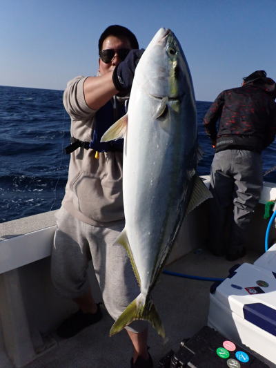 鰤感度爆発しました!船中の竿が曲がりだし怒涛のヒットで一気に10本キャッチ!てんてこ舞の船上になりましたが皆さんに協力していただき何とかネットが間に合いました。その他にも活性上がると3連発4連発4連発と一艇で21本のキャッチでした。明日は欠航ですが1日日曜日は今のところ出船予定ですのでご予約下さい。
