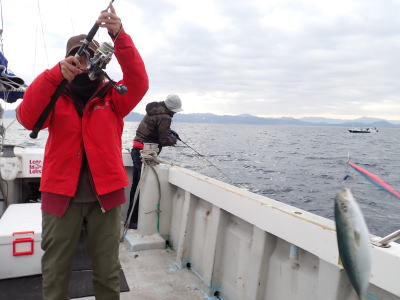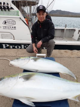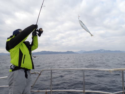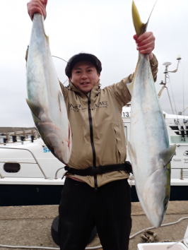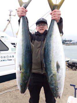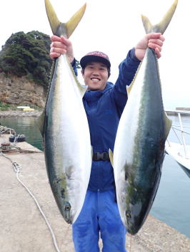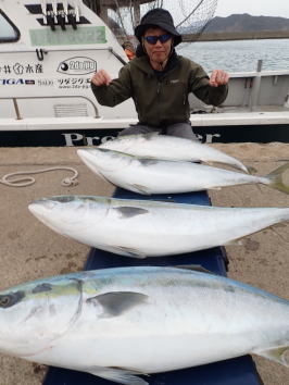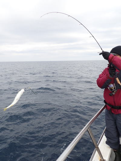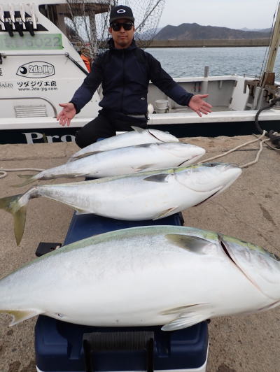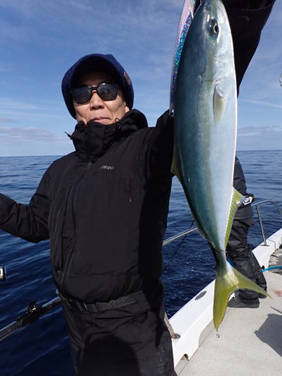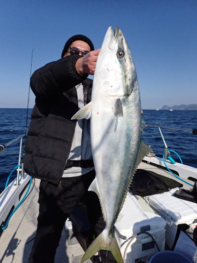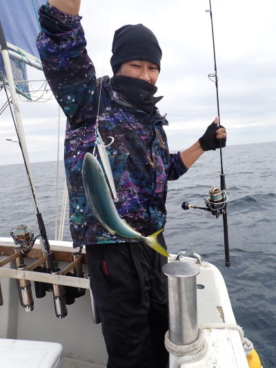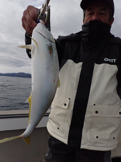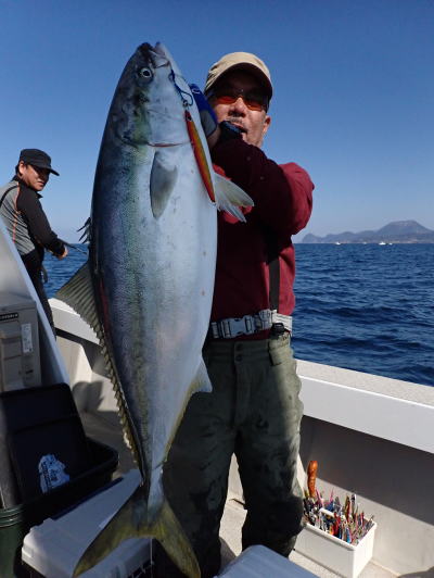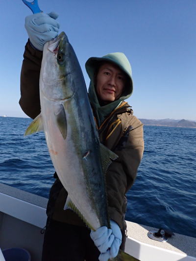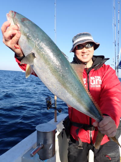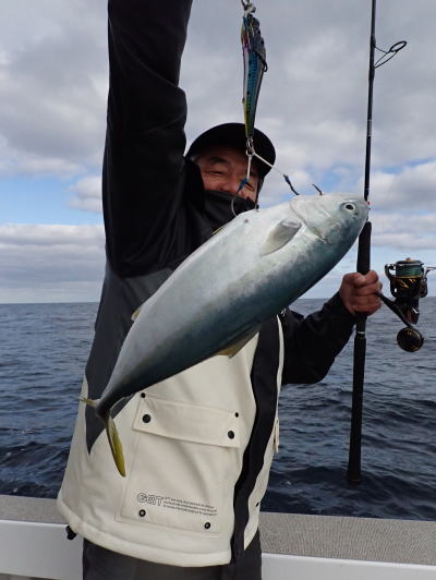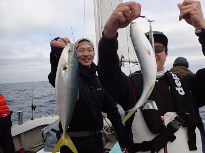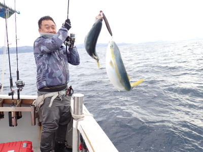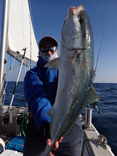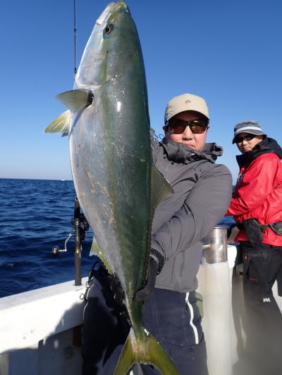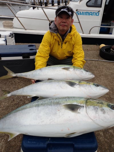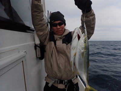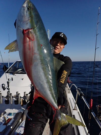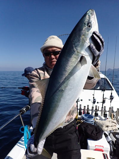 鰤感度爆発しました!船中の竿が曲がりだし怒涛のヒットで一気に10本キャッチ!てんてこ舞の船上になりましたが皆さんに協力していただき何とかネットが間に合いました。その他にも活性上がると3連発4連発4連発と一艇で21本のキャッチでした。明日は欠航ですが1日日曜日は今のところ出船予定ですのでご予約下さい。