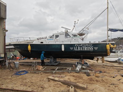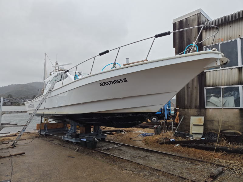 春のジギングシーズンに向け上架整備中、まずは1号艇。