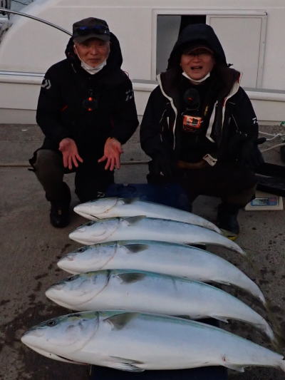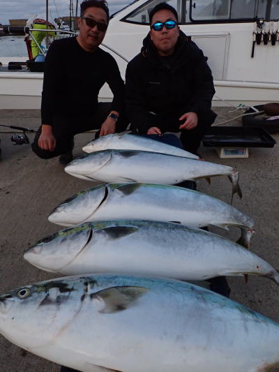 | 5日(木曜日)鰤爆釣!10,5kg頭に22本 昨日までの風が朝まで残り様子を見ながらの出船でした。昼過ぎから活性上がりだし鳥山も発生で鰤連発、7名様で22本、平均3本の爆釣でした。 ![]() ![]() ![]() ![]() ![]() ![]() ![]() ![]() ![]() ![]() ![]() ![]() ![]() ![]() ![]() ![]() |