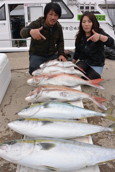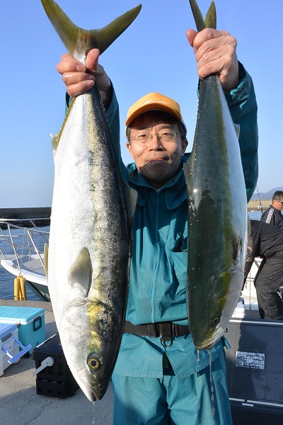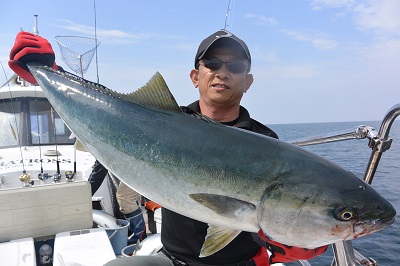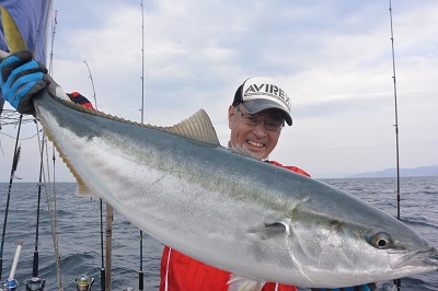 | 20日(金曜日)鰤、メジロ好釣55本!ハマチ25本、シーバス2本。 ハマチはポツポツ。メジロが機嫌よくジグに反応、連発しました。 |