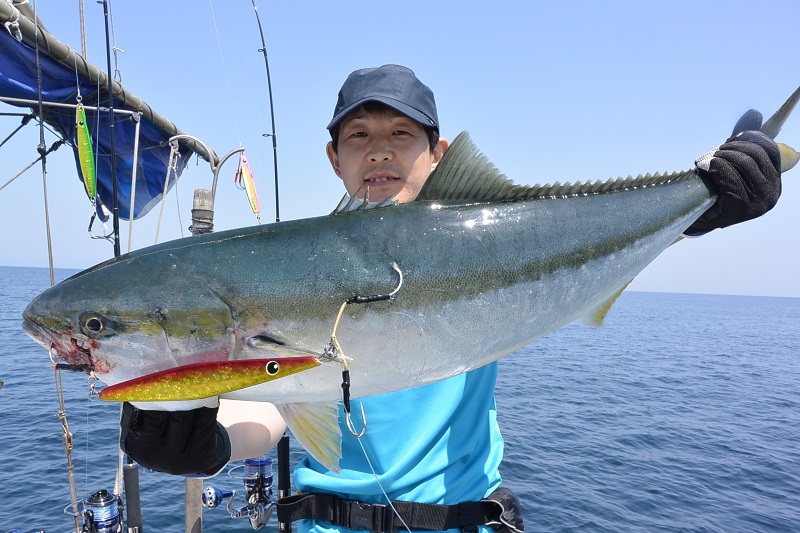 | 30日(月曜日)鰤大爆釣!!60本、メジロ23本、ヒラマサ、マダイなど。 メジロも混ざりましたがあたれば鰤状態!鰤の大群でした。凄まじいボイルに鳥山、ボトム感度も盛り上がり2発3発とヒット!船中でドラグの音が響きました。竿頭は鰤11本!! |