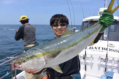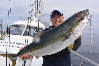 | 13日(金曜日)大メジロ~鰤20本、メジロ36本。 鰤メジロ好釣!!朝からコツコツキャッチしていましたが夕方には怒涛のヒットに。イルカ恐怖症?も治ったようですね。またジグに反応するようになってきました。今日はハマチは狙えず。 |