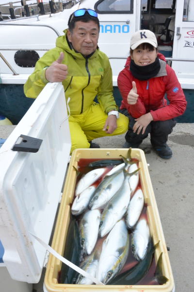 | 26日(日曜日)鰤9、1kg頭に4本、メジロ12本、ハマチ好釣200本。 先ずはハマチから、ポツンポツンのヒットが徐々に活性上がり入れ食いに!皆さんお土産取れたので大物狙いへ。メジロ感度が通って行くんですがポツンのヒット、コツコツキャッチしてもらいました。中から鰤も。 ![]() ![]() ![]() ![]() ![]() ![]() ![]() ![]() ![]() ![]() ![]() |