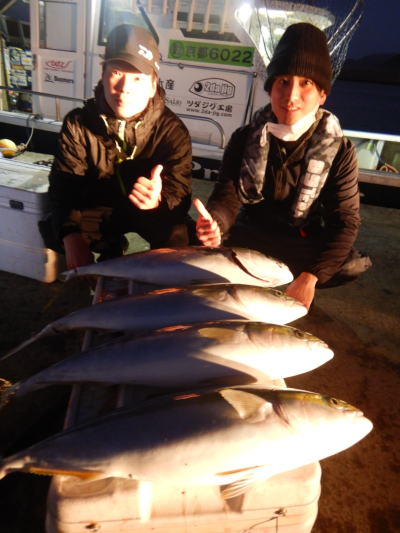 | 22日(土曜日)寒鰤、メジロ21本、ハマチ好釣180本、ヒラマサなど。 ハマチが入れ食い!!一時間続きました。量るの忘れましたが中から丸々の10kgクラス寒鰤キャッチ!メジロは別群れ、ポツポツキャッチ。 ![]() ![]() ![]() ![]() ![]() ![]() ![]() ![]() ![]() ![]() ![]() ![]() ![]() ![]() |