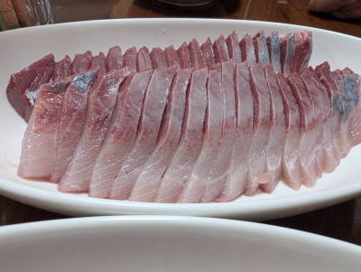 大ハマチスマ刺身、サワラ炙りフライみな旨い!!