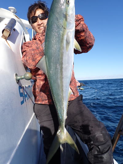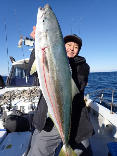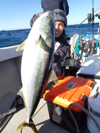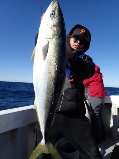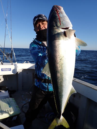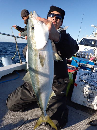| 10日(水曜日)鰤11,6kg、2本 なかなか口を使ってくれませんでした。難しい群れの中から寒鰤キャッチ!お見事!! ![]() ![]() |