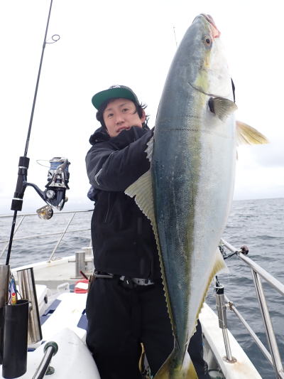 鰤感度爆発しました!船中の竿が曲がりだし怒涛のヒットで一気に10本キャッチ!てんてこ舞の船上になりましたが皆さんに協力していただき何とかネットが間に合いました。その他にも活性上がると3連発4連発4連発と一艇で21本のキャッチでした。明日は欠航ですが1日日曜日は今のところ出船予定ですのでご予約下さい。